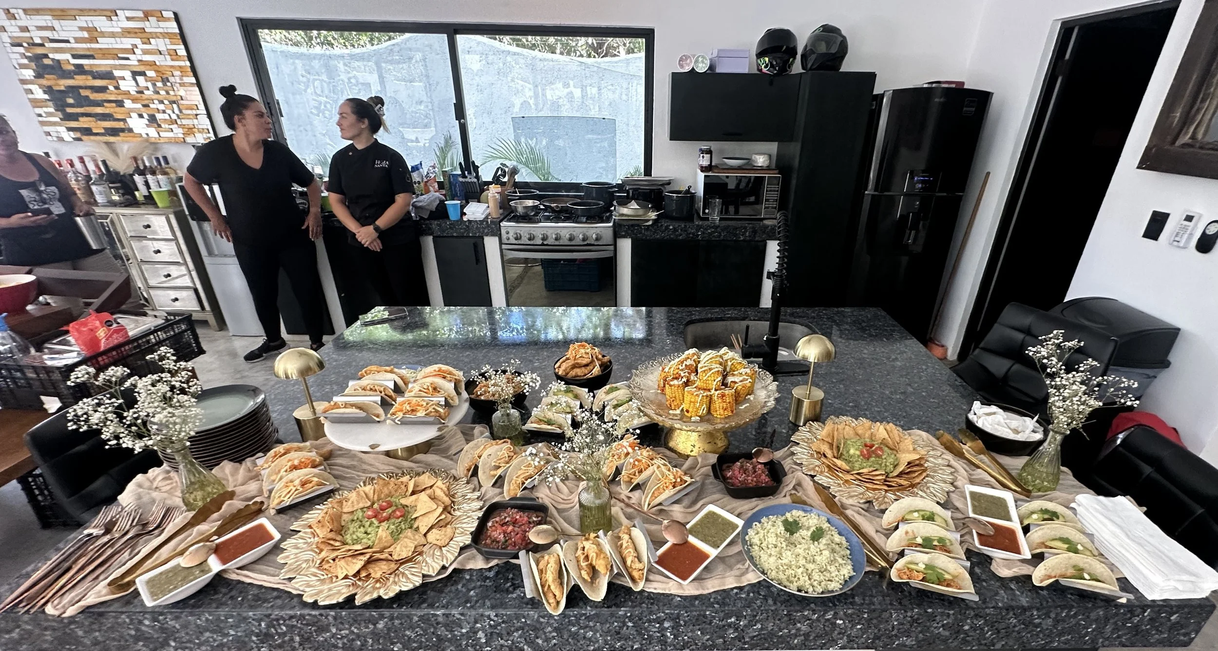 At 10am, your private chef brunch is served: Baja fish tacos, chicken tinga, fresh fruit, and juices to fuel the day. Nom nom nom!