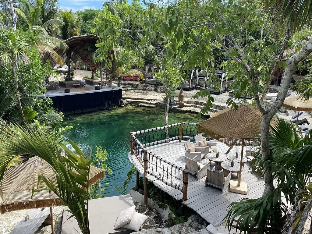 Once you’re refreshed, head to Vesica Tulum, a unique cenote beach club that blends natural beauty with chic design. Set around a crystalline freshwater cenote surrounded by lush jungle, Vesica offers sunbeds, craft cocktails, and a laid-back soundtrack. It’s the ideal Sunday escape—soak in turquoise waters, sip on a mezcal spritz, and enjoy the slower pace of your final day.